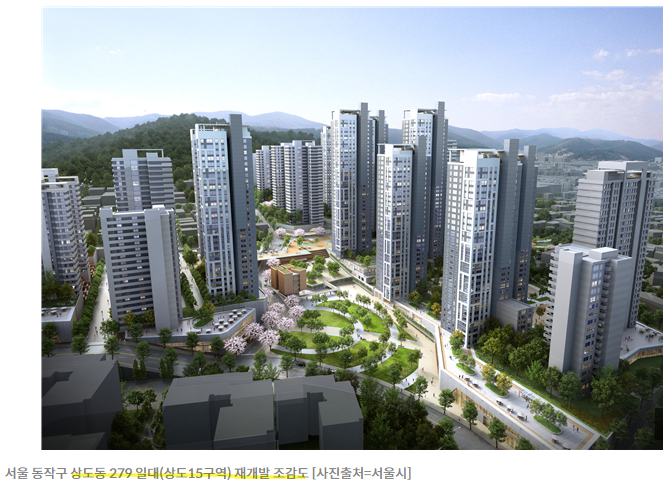급경사 지형으로 7층 이하 저층 주거지만 있던 서울 동작구 상도 15 구역이 최고 35층 높이, 3200 가구 안팎 대단지 아파트로 재개발된다.