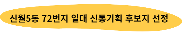 신월5동 72번지 일대는 최근 신통기획 후보지로 지정된 만큼 권리산정기준일과 토지거래허가구역 등 확인이 필요하며 투자를 하시는 분들은 각별히 주의가 필요합니다.