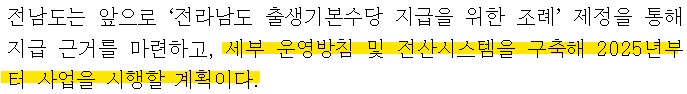 전남 출생수당으로 매월 20만원 지급으로 만 18세까지 아동수당 지급
