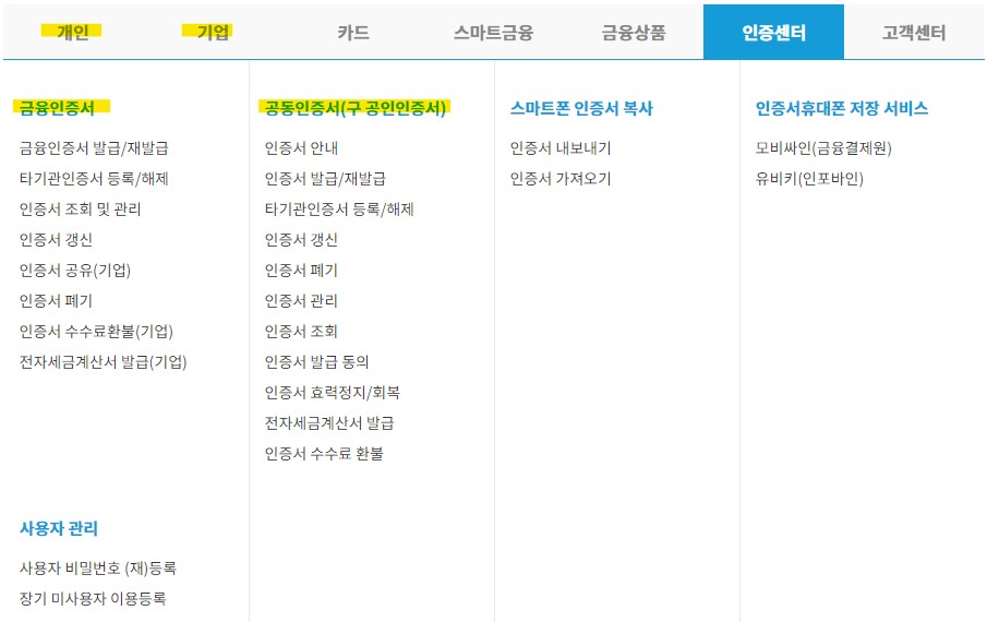 - 공인인증서 발급 선택: 메뉴에서 '공인인증서 발급' 옵션을 선택합니다.