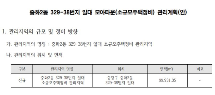 서울 중랑구 중화동 329-38 일대 모아타운 관리계획안 통과