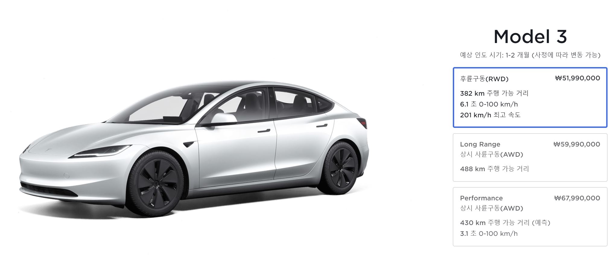 테슬라 모델 3 하이랜드 퍼포먼스 가격