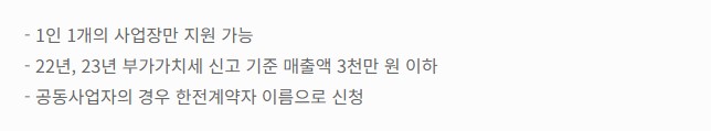 24년부터 연 매출 6000만원 이하영세 소상공인을 대상으로 최대 20만원의 전기요금을 특별 지원합니다.