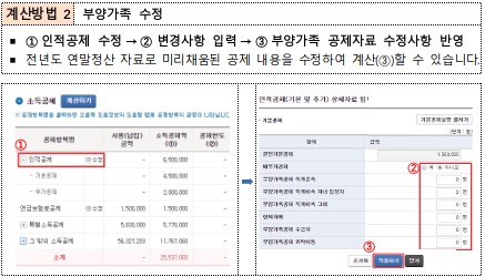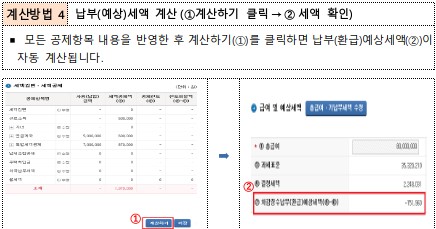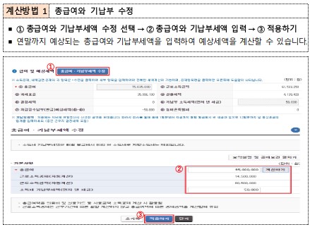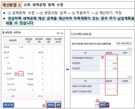 과거 연말정산 공제금액 수정, 올해 예상되는 총급여액 및 기납부세액 입력하면 예상세액 자동 계산